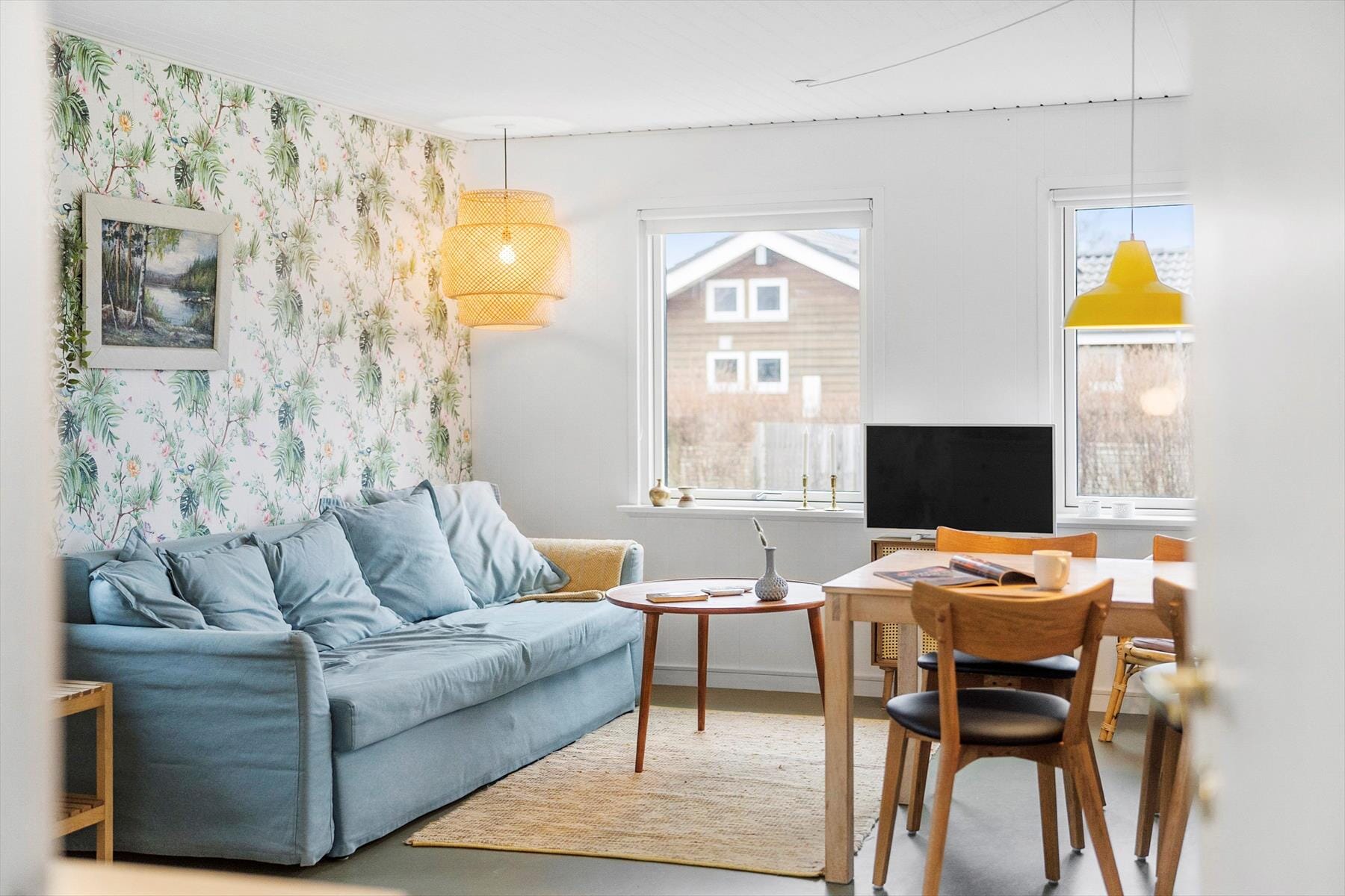 Das Fe­ri­en­haus bietet vier Schlafplätze, verteilt auf zwei charmante Schlafzim­mer, die beide mit stil­vol­len Farben und wunderschönen Tapeten dekoriert sind. Hier schlafen Sie in bequemen Betten und tanken neue Energie für den nächsten Ur­laub­s­tag. Die letzte Schlafmöglichkeit befindet sich im Wo­hn­be­reich, wo ein elegantes und gemütliches Schl­af­so­fa für eine angenehme Nachtruhe sorgt.