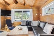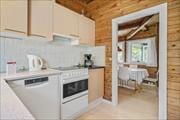 Bei diesem attraktiven Ferienhaus handelt es sich um ein klassisches Holzferienhaus aus dem Jahr 1974. Die 72 m² große Wohnfläche umfasst drei Schlafräume, ein Badezimmer, eine Küche und einen über Eck gebauten Wohnraum. Mit seinen rustikalen Holzwänden und den hohen Decken hat das Objekt glücklicherweise seinen typisch dänischen Ferienhauscharme bewahrt. Diesem konnte auch die Ausstattung mit modernen Annehmlichkeiten wie beispielsweise WLAN, einer Wärmepumpe und einem Geschirrspüler nichts anhaben. Durch sämtliche Fenster genießt du den Ausblick auf die grünen Bäume des Naturgrundstückes. Mit ein wenig Glück kannst du sogar während deines Frühstücks oder während gemütlicher Stunden auf dem Sofa nahe des Kaminofens Rehe oder Fasane beobachten, die sich auf deinem Grundstück tummeln.