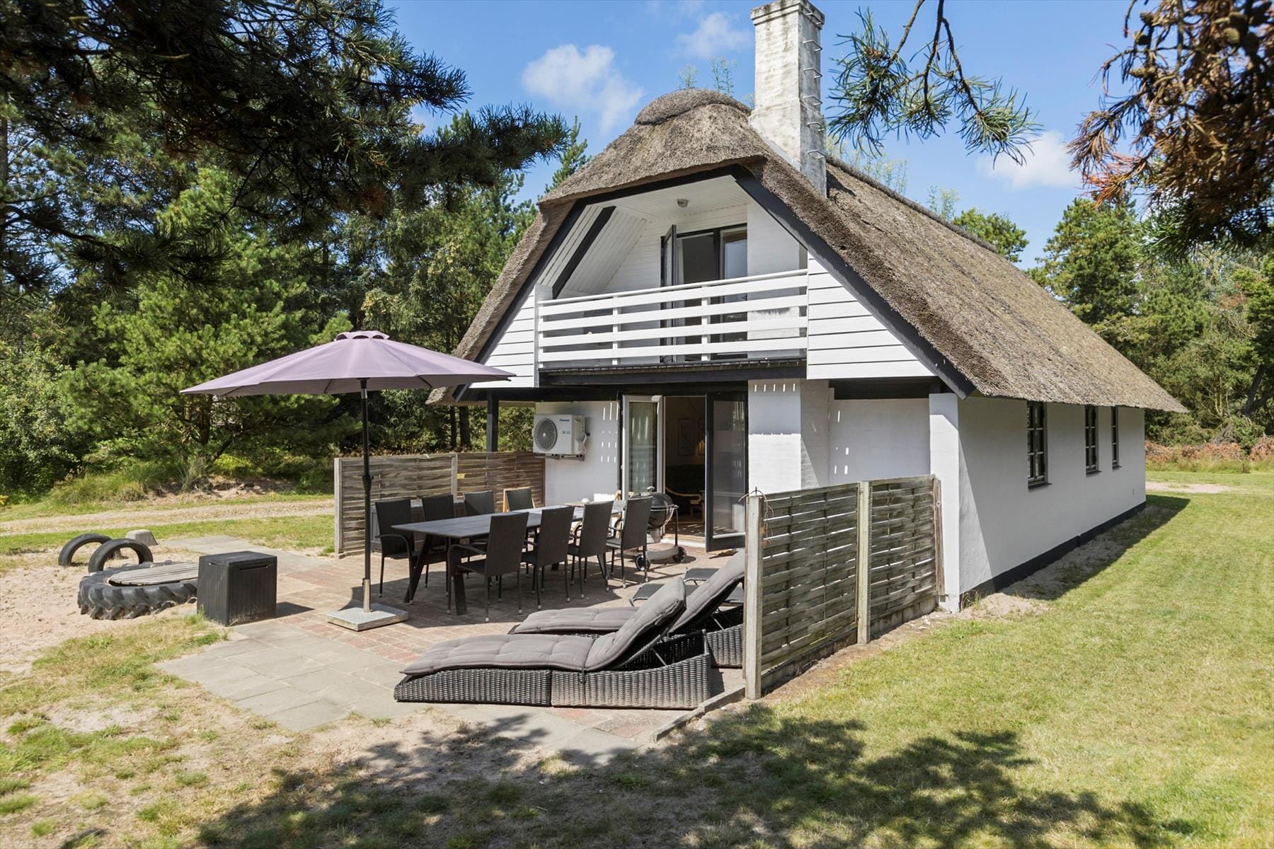Hier handelt es sich um ein klassisches Ferienhaus mit Reetdach, das sich schön in Rømøs traumhafte Natur einschmiegt. Sowohl im Inneren als auch draußen präsentiert sich das Haus einladend und gepflegt, denn es wurde 2021 renoviert, was sich unter anderem im Badezimmer im Erdgeschoss und in der Toilette im oberen Bereich bemerkbar macht, die beide modern eingerichtet sind. In der klassischen Sauna kannst du nach den Ausflügen des Tages in der kuscheligen Wärme so richtig abschalten. Alternativ kannst du es dir auch im Wohnzimmer gemütlich machen, ein angenehmer Aufenthaltsraum mit Brennofen und einer offenen Küche. Das Haus beinhaltet drei Schlafzimmer. Im Erdgeschoss befindet sich ein Schlafraum mit Doppelbett, und oben zwei weitere Zimmer mit jeweils einem Doppel- und einem Einzelbett, insgesamt haben also acht Personen die Möglichkeit, im Haus zu übernachten.