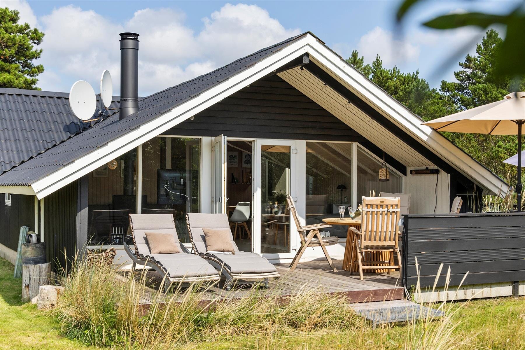 Wenn die Sommersonne scheint, ist es sehr verlockender auf der Terrasse zu sitzen, als in die Sauna zu gehen. Die Terrasse ist nach Süden ausgerichtet, sodass Sie hier auch mitten am Tag Sonne tanken können. Schatten finden Sie in einem der überdachten Terrassenbereiche, die auch ideal sind, wenn der Tag ausklingt und Sie Grillabende und gute Gespräche genießen möchten