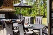 Das 2.500 m² große Grundstück ist ein wunderschöner Ort, um das herrliche Sommerwetter und den idyllischen Urlaubsfrieden in vollen Zügen zu genießen. Die Rasenfläche des Gartens ist von hohen Bäumen und einer dichten Bepflanzung umgeben. Rund um das Haus triffst du auf mehrere schöne Aufenthaltsplätze und Terrassen, sodass du völlig unabhängig von der Tageszeit stets ein sonnenverwöhntes Plätzchen finden wirst.