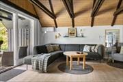 Das Ferienhaus liegt seit 1978 in der schönen Landschaft. Seit seiner Erbauung wurde es laufend liebevoll gepflegt und modernisiert. Im Hausinneren empfängt dich die unbezahlbar schöne, typisch dänische Ferienhausatmosphäre, die maßgeblich durch helle Holzwände, hohe Decken mit einer offenen, rustikalen Balkenlage, eine komfortable Möblierung und einen Gemütlichkeit schaffenden Kaminofen im Wohnraum geprägt wird. Eine Wärmepumpe verspricht ein angenehmes Wohnklima. Die offene Küchenabteilung stellt eine gute und funktionale Basis für die Zubereitung deiner Mahlzeiten dar. Für erholsame Momente voller Entspannung ist dank der in Verlängerung des Badezimmers gelegenen Sauna gesorgt. Falls die Wärme dich schläfrig gemacht hat, kannst du dich sehr schön für ein Nickerchen in eines der drei Schlafzimmer zurückziehen. Zwei der Schlafräume befinden sich im Obergeschoss dieses ansprechenden Ferienhauses.