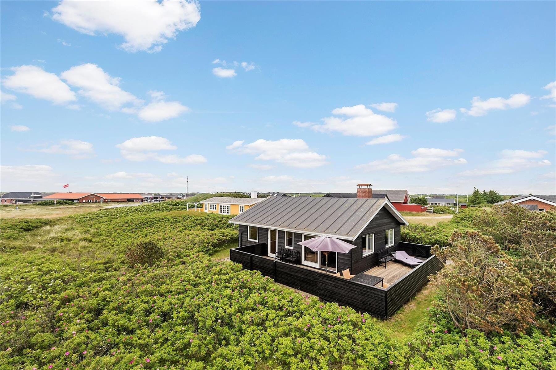 Die Aussicht über die eindrucksvolle Landschaft mit Hagebuttensträuchern, Strandhafer und sanften Dünen kannst du vom Wohnbereich und von den zwei Schlafzimmern aus bewundern, und sie erinnert daran, dass du dich hier weit weg von den täglichen Routinen befindest.