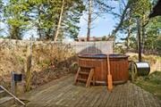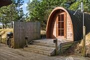 Wenn das Wetter einlädt, das Leben im Freien zu genießen, kannst du den ganzen Tag draußen verbringen. Das morgendliche Bad kannst du unter der Außendusche nehmen, und danach kannst du auf der Holzterrasse Kaffee trinken. Wenn das Wetter umschlägt und du zusätzliche Wärme brauchst, ist es fantastisch, freien Zugang sowohl zum Wildnisbad als auch zur Sauna im Wellnessbereich der Terrasse zu haben. Das Grundstück ist groß, und sowohl Kinder als auch Hunde können sich hier in der ungestörten Natur wohlfühlen. Zwischen den Bäumen findest du einen Shelter, der tagsüber zum Spielen genutzt werden kann, aber auch zum Übernachten, wenn du davon träumst, mit dem Klang von Vogelgezwitscher und dem Rauschen des Windes in den Bäumen aufzuwachen.