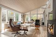 Mit dunkelbraunen Schiebetüren zwischen den beiden Wohnzimmern und Einbauschränken in einem der drei Schlafzimmer ist es gelungen, einen Teil des 1960er-Jahre-Charmes des Hauses zu erhalten – und im Zusammenhang mit der Modernisierung der Räume ist es ebenfalls geglückt, einen hellen und freundlichen Einrichtungsstil mit schönen Farben an den Wänden und klassischen Möbeln zu schaffen. Alles in allem lässt es sich in dem Haus wunderbar wohnen, und wenn du Entspannung fernab vom Alltag suchst, bist du in diesem Ferienhaus genau richtig. Ein schönes Detail ist der Brennofen im Esszimmer: Stell dir vor, du sitzt hier auf der Bank in der gemütlichen Wärme mit Blick auf die Natur und genießt eine köstliche Mahlzeit zusammen mit der Familie.