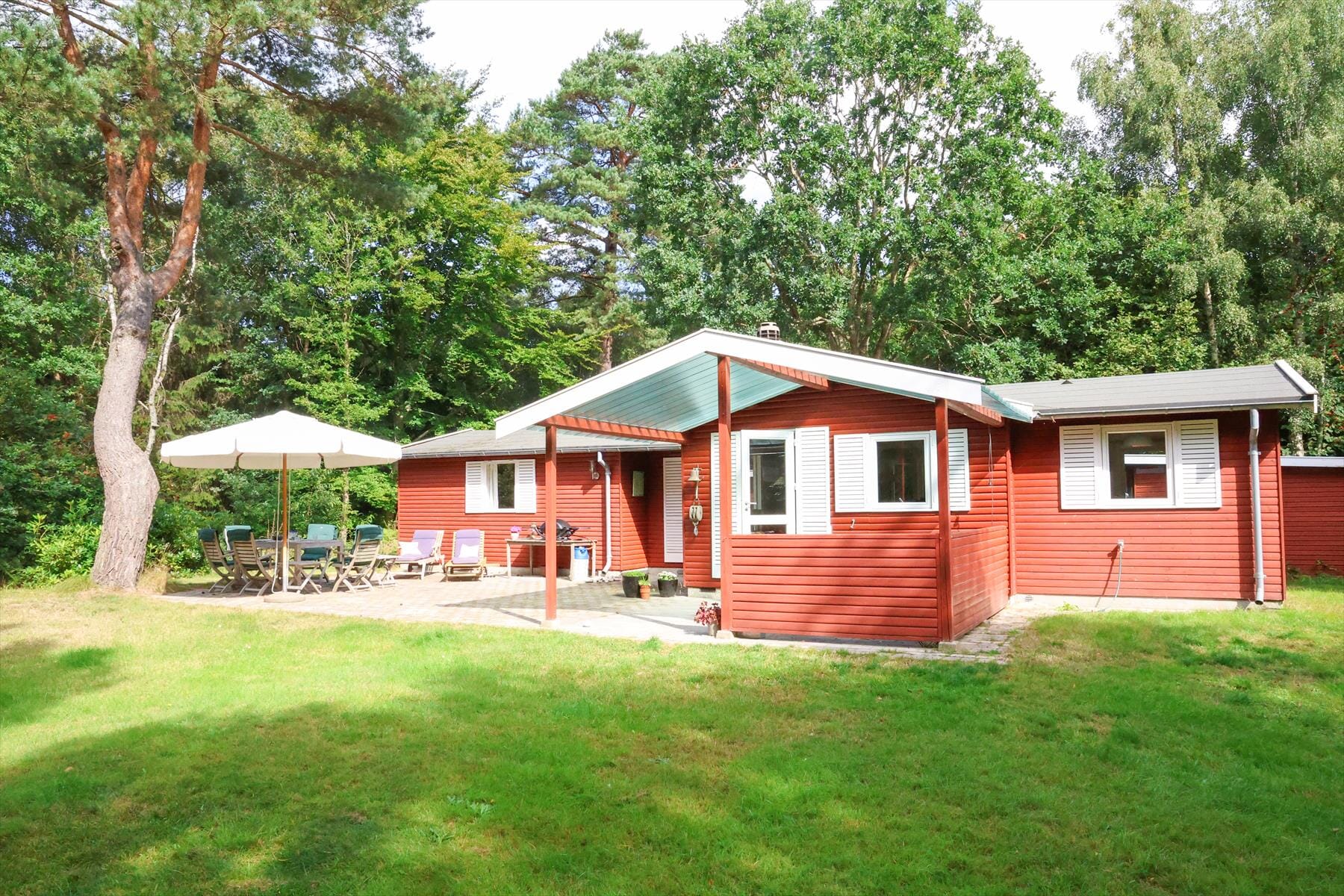 Unter freiem Himmel erwartet dich eine große Holzterrasse, auf der du in aller Ruhe die Sonne genießen und dich in ein spannendes Buch vertiefen kannst, während deine Kinder im Garten umhertollen und eure mitgebrachten Outdoor-Spiele spielen. Der überdachte Bereich der Terrasse lädt zu gemeinsamen Mittag- und Abendessen ein. Da der Garten deines Ferienhauses gut abgeschirmt ist, haltet ihr euch auf dem Grundstück angenehm ungestört auf und genießt die friedvolle Umgebung und das satte Grün ringsum in vollen Zügen. Stelle dir nur vor, wie du von einem erfrischenden Bad am Sandstrand zurückkehrst, es dir auf der Terrasse gemütlich machst, dem Vogelgezwitscher lauscht und dabei vielleicht sogar das ein oder andere Reh beobachtest. Entspannter und stimmungsvoller geht es kaum.