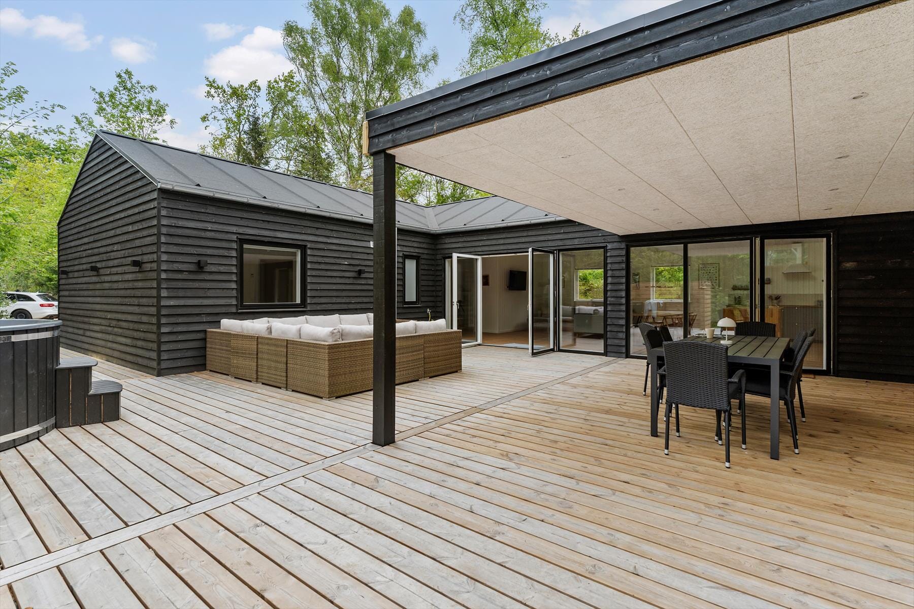 Tolles Ferienhaus mit einer fantastischen Terrasse - unweit eines schönen Sandstrands und Waldgebietes
