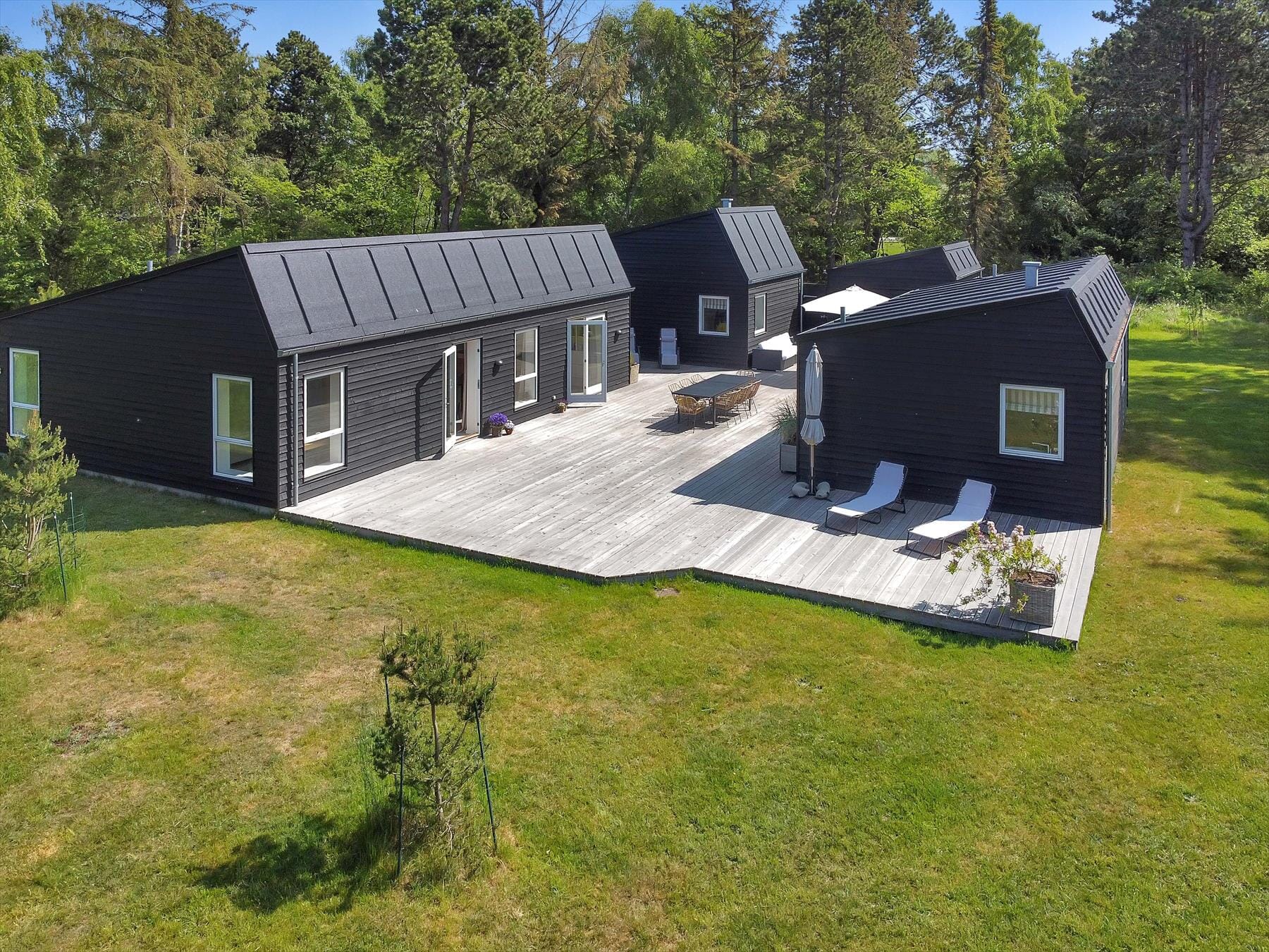 Das exklusive Ur­laubs­do­mizil empfängt Sie mit einem her­r­li­chen Wohnraum. In diesen fügt sich die schöne Küche, die sämtliche modernen An­ne­hm­li­chkei­ten be­in­hal­tet, har­moni­sch ein. In der Küche können Sie sehr gut gemeinsam köstliche Ma­hlzei­ten kreieren. Die drei schönen Schlafräume überzeugen mit aus­rei­chend Schrankfläche. Das fan­ta­sti­s­che Ba­dezim­mer verwöhnt mit einer Dusche und einer frei­ste­hen­den Badewanne. Das Haus umfasst mehrere Bereiche. Gegenüber des "Haup­t­hau­ses" erwartet Sie ein Nebengebäude, das ebenfalls mit einem tollen Ba­dezim­mer mit Dusche und Badewanne zu glänzen weiß. Zwischen den beiden Gebäuden befindet sich eine sehr große, wunderschöne Terrasse, auf der Sie sich von morgens bis abends in der Sonne entspan­nen können. Mit ein wenig Glück beo­ba­ch­ten Sie dabei sogar Rehe und andere Wildtiere. Während Sie das süße Leben auf der Terrasse genießen, werden Ihre Kinder vergnügt im Garten spielen. Das Fe­ri­en­haus präsentiert sich neu, hell und überaus einladend. Beim Bau wurden ausschließlich beste Ma­te­ri­a­li­en verwendet. Nach einem schönen Tag am Strand spült Ihnen die Außendusche den Sand und das Salz des Meeres von der Haut. Dieses exklusive, stilvolle Fe­ri­en­haus müssen Sie unbedingt selber erleben!
