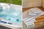 Modernes, hochwertiges Sommerhaus mit Whirlpool und Sauna im Freien.