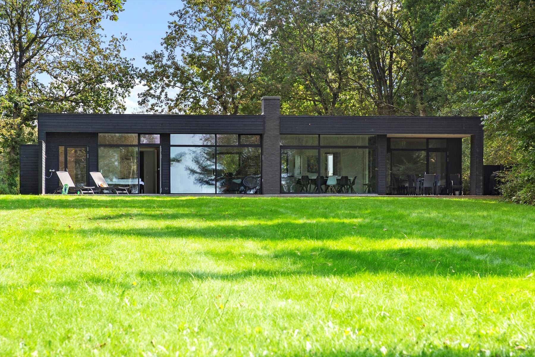 Das 2.788 m² große Grundstück wird durch eine große Grasfläche und hohe Bäume geprägt, die das Grundstück umgeben. Nach Westen blicken Sie durch eine Lücke im Bewuchs auf das Wasser - vom Ferienhaus aus und von der nach Westen gerichteten Terrasse. Ein Teil der Terrasse ist überdacht. In einer Ecke der Terrasse befindet sich eine Nische, in der die Außendusche platziert ist. Was könnte es Schöneres geben, als beim Gesang der Vögel ein morgendliches Duschbad im Freien zu genießen?