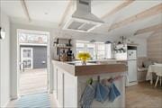 Wenn Sie den Eingangsbereich betreten, finden Sie einen gefliesten Boden und viel Platz für Ihre Mäntel vor. Von hier aus gelangen Sie in eine geräumige Wohnküche mit offen liegenden Deckenbalken und einem zentral platzierten Kaminofen. Die offene Küche verfügt über eine große Arbeitsfläche, einen Geschirrspüler und einen großen Kühlschrank mit Gefrierfach. Das Wohnzimmer enthält einen Essbereich mit einer schönen alten Bank und Blick auf den Hinterhof. In direktem Anschluss befindet sich eine gemütliche Sofaecke mit wandmontiertem Fernseher mit Chromecast. Hier ist es möglich, eigene Inhalte über Handy oder Tablet und das WiFi des Hauses zu schauen. Dies ist der absolute Sammlungspunkt des Hauses, in dem man zusammen kommt, um gemeinsam zu kochen oder zu entspannen.
