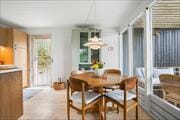 Die Wohnküche und das Wohnzimmer sind das Zentrum des Hauses. Dieser Raum wird durch den Holzofen beheizt, der für Wärme und Gemütlichkeit sorgt, sobald Sie das Feuer angezündet und sich niedergelassen haben. Der Raum präsentiert sich hell und einladend mit einem schönen Dielenboden und weiß gestrichenen Holzwänden. Die renovierte Küche besticht mit Ihrem klassischen Stil, der die gemütliche Ferienhausatmosphäre vergangener Tage aufleben lässt. Dank der offenen Wohnlösung genießen Sie selbst während der Zubereitung der Mahlzeiten die Nähe Ihrer Lieben, die es sich auf dem Sofa gemütlich gemacht haben.