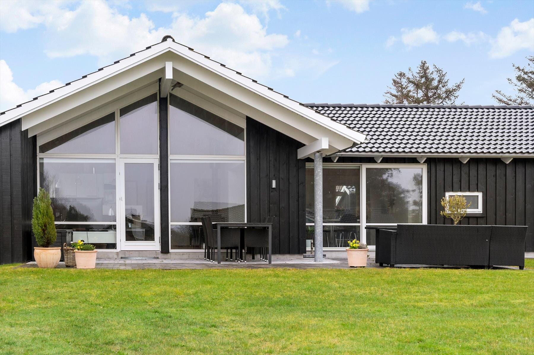 Das Leben im Freien bekommt beste Bedingungen mit dem großen Garten, der viel Platz zum Spielen, Entspannen und für schöne Ferienstunden bietet, und die Terrasse ist teilweise überdacht, sodass du bei jedem Wetter draußen sitzen kannst, während der offene Bereich dir die Möglichkeit gibt, die Sonne zu genießen. Hier könnt ihr euch am Grill versammeln und den Abend mit gutem Essen und langen Gesprächen ausklingen lassen, während Gartenmöbel und Liegestühle sowohl Raum für gemeinsame Zeit als auch für ruhige Pausen bieten.