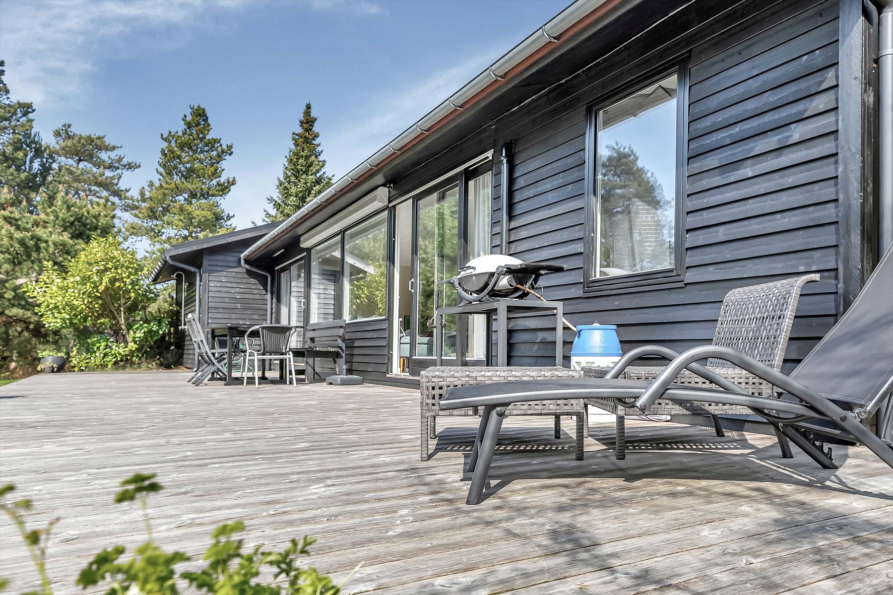 Die große Holzterrasse mit einer elektrischen Markise lädt zu ausgedehnten Sonnenbädern und geselligen Runden mit einem köstlichen Essen vom Grill ein. Mit ein wenig Glück können Sie auf dem Grundstück Rehe beobachten. Das Naturgrundstück ist teilweise mit Heide bewachsen und bietet Ihren Kindern einen herrlichen Spielbereich. Während Sie sich in aller Ruhe auf der Terrasse erholen und entspannen, werden Ihre Kinder vergnügt das tolle Grundstück erkunden und schaukeln.