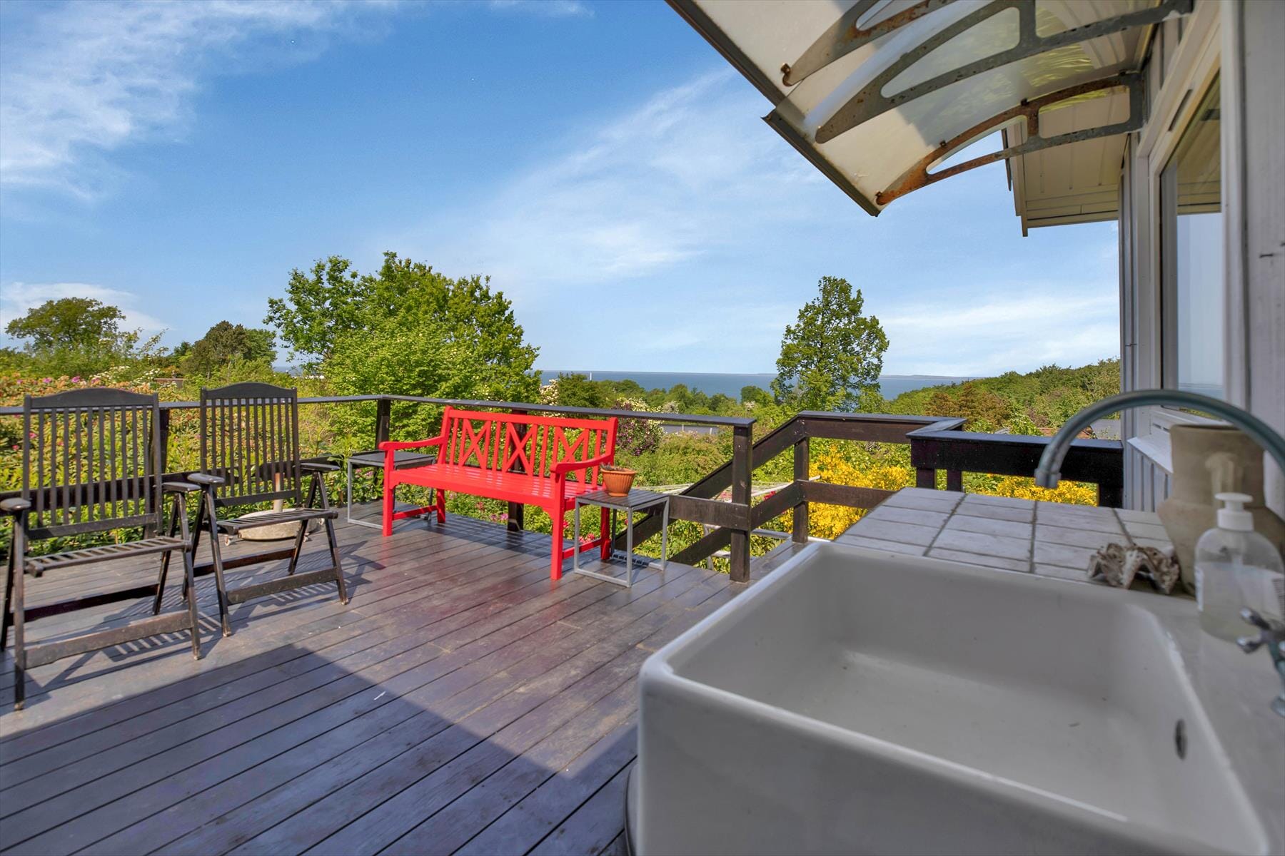 Das zweigeschossige Urlaubsdomizil wurde aus hochwertigen Materialien errichtet. Es beinhaltet eine tolle offene Küche mit einem guten Essplatz. Die Küche bietet Ihnen alles, was Sie für die Zubereitung Ihrer Mahlzeiten benötigen. Hierzu zählen unter anderem ein großer Gasherd, zwei Backöfen und ein Geschirrspüler. An die Küche schließt der wunderbare Wohnraum, dessen reizvollen Lichteinfall und prachtvolle Aussicht Sie begeistern wird. Die Schlafplätze verteilen sich auf einen großen Masterbedroom mit einem Doppelbett und auf drei weitere Schlafzimmer. In einem der Schlafzimmer erwartet Sie ein Himmelbett für zwei Personen, das höhenverstellbar ist. Eines der beiden attraktiven Badezimmer verwöhnt mit einem Whirlpool. Unter freiem Himmel steht Ihnen eine fantastische Terrasse zur Verfügung. Diese unterteilt sich in mehrere Bereiche. Sie genießen einen Ausblick über das große, schöne Grundstück mit einem kleinen See. Der Ausblick wird durch das Meer und den Wald im Hintergrund untermalt. Sie werden mit viel Ruhe und Sonne verwöhnt und beobachten mit ein wenig Glück Rehe und andere Wildtiere. Nach einem langen Tag am Strand lädt der hauseigene Grill zu stimmungsvollen Abenden mit einem guten Essen im Abendlicht ein. Eine Außenküche und eine Außendusche sind vorhanden.