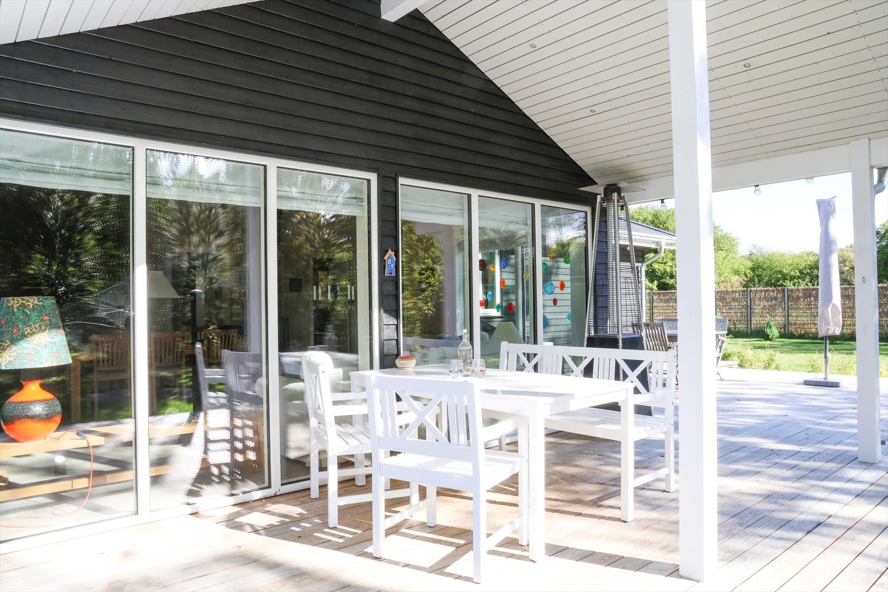Nach einem entspannten Tag am schönen Sandstrand, spült dir die Außendusche deines Ferienhauses den Sand und das Salz des Meeres von der Haut. Sie verfügt über fließend warmes und kaltes Wasser und sorgt somit an warmen Sommertagen und nach schweißtreibenden Gartenspielen für willkommene Erfrischungen. Auf den großen Terrassenarealen deines Ferienhauses genießt du das Leben im Freien von morgens bis abends. Sie sind angenehm weitläufig und bieten viel Platz für gemeinsame Essen und für ausgedehnte Sonnenbäder. Bei Einbruch der Dunkelheit kannst du dich mit deinen Lieben wunderbar unter die große Terrassenüberdachung zurückziehen und hier den Abend in aller Gemütlichkeit bei angeregten Gesprächen und eurem Lieblingsgetränk ausklingen lassen.
