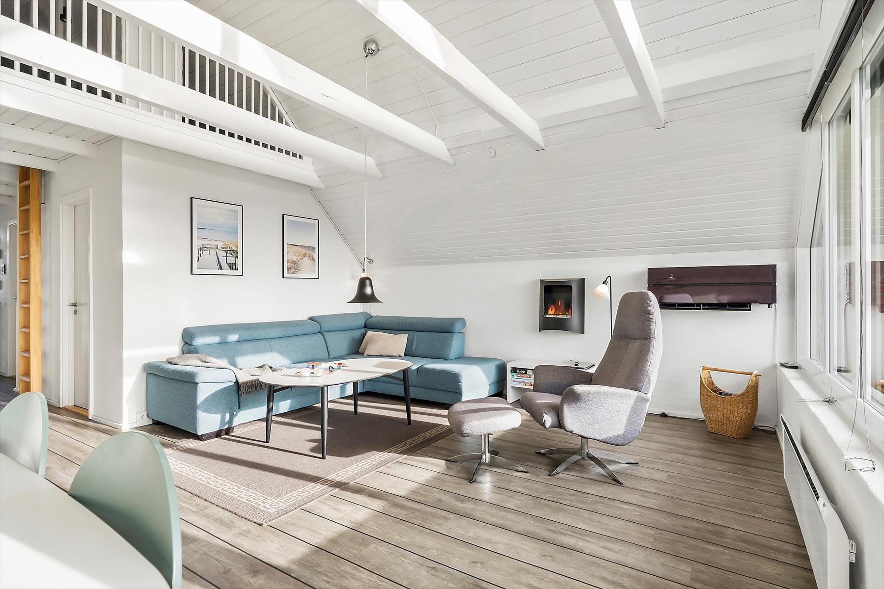 Die Dünenheide bietet vom Haus und von der Terrasse aus einen einzigartigen Anblick. Dank der zahlreichen Wanderwege durch die Landschaft haben Sie viele Möglichkeiten für ausgedehnte Spaziergänge durch die Hügellandschaft. Zudem ist es nur ein kurzer Spaziergang zum Strand, wo Sie an warmen Sommertagen in der Nordsee ein kühles Bad nehmen können oder wo der Meeresschaum über den Sand peitscht, wenn der Westwind weht und die Wellen ihre Zähne zeigen. Auch Aktivurlaub ist hier möglich, ob Sie nun Rad fahren, angeln oder mit dem Paddel- oder Surfbrett auf den Ringkøbing Fjord oder das Meer hinausfahren möchten. Der Golfplatz befindet sich in Søndervig, nur fünf Autominuten von der Adresse entfernt, und Sie können hier auch die Geschäfte, Restaurants und das tropische Schwimmbad besuchen.