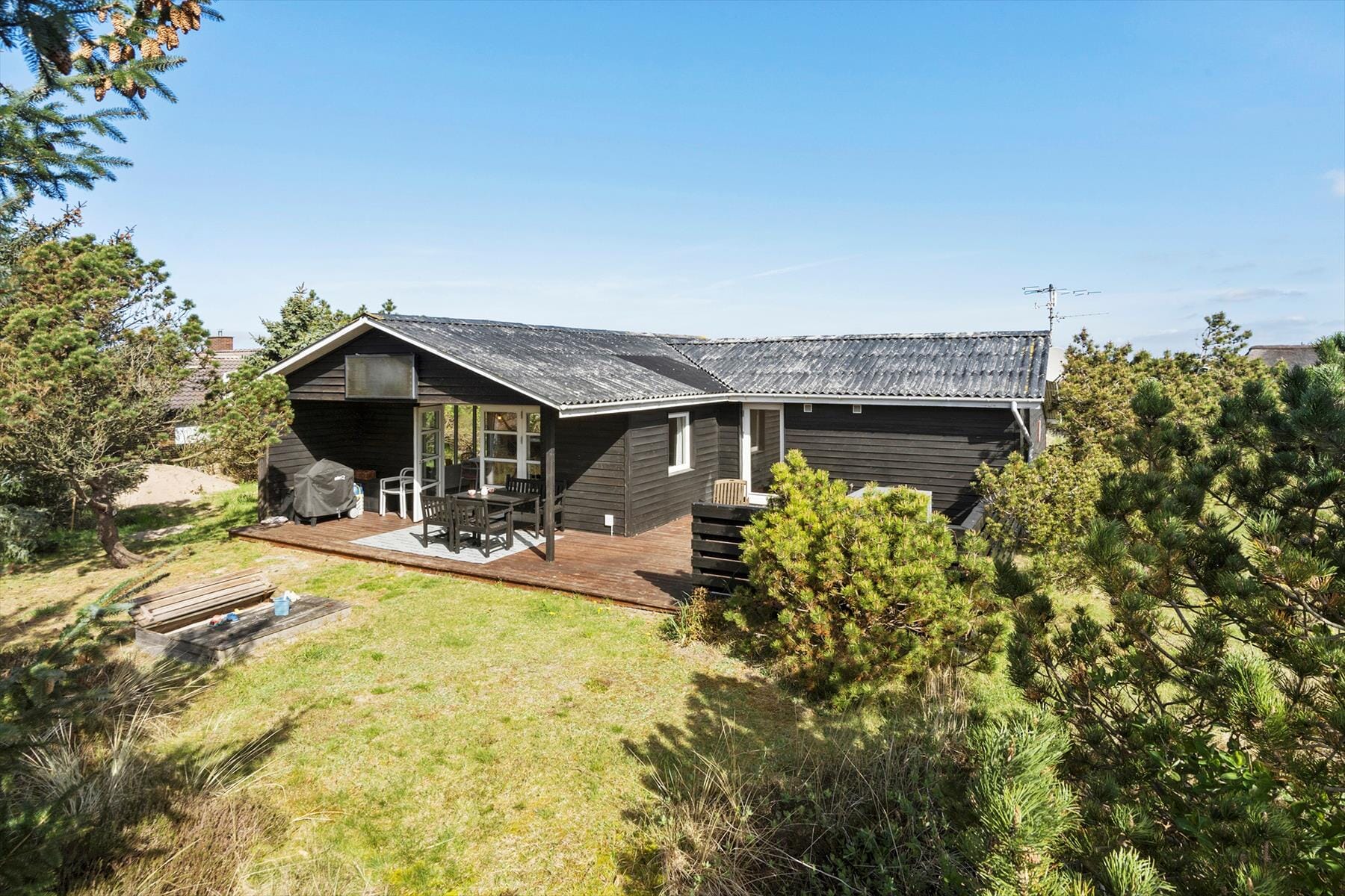 Haus-ID: 230Dieses einladende Ferienhaus im südlichen Bereich Søndervigs befindet sich auf einem idyllischen Grundstück, das von Bäumen und üppigem Bewuchs umgeben ist. Auf der Terrasse und im Garten mit einer Sandkiste und einem Fußballtor halten Sie sich komplett ungestört auf. Mit fünf Schlafplätzen eignet sich das Mietobjekt sehr gut für Familien mit Kindern. Zu Fuß spazieren Sie durch schöne Natur an den rund 750 Meter entfernten Nordseestrand.