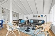 Auf der großen Holzterrasse des Ferienhauses können Sie das schöne Wetter von morgens bis abends in angenehmer Atmosphäre genießen. Wenn Sie durstig werden, können Sie sich ganz einfach in der Küche ein Glas Wasser oder eine heiße Tasse Kaffee holen, und die Mahlzeiten können natürlich auch nach draußen verlegt werden. Wenn Sie hier sitzen, können Sie den Lyngvig-Leuchtturm in der Ferne über der Sommerhauslandschaft von Holmsland Klit sehen, und aus nächster Nähe können Sie den Geruch und Anblick von Heidekraut und anderer Vegetation auf dem großen Naturgrundstück des Hauses genießen. In der Nähe der Terrasse gibt es eine Schaukel und einen Sandkasten für die jüngsten Familienmitglieder.