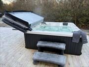 Draußen geht das Wohlfühlprogramm weiter. Auf der großzügigen Terrasse kannst du grillen und die Sonne genießen, und im warmen Badezuber lässt sich der Abend unter freiem Himmel wunderbar ausklingen – vielleicht mit einem Glas Wein und dem Sternenhimmel als Kulisse. Die Terrasse bietet Schutz und Sicherheit für die Jüngsten der Familie. Somit können alle das Draußen sein in Ruhe und Frieden genießen.
