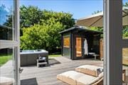 Das Sommerhaus verfügt über zwei Badezimmer. Das eine befindet sich im Haus und das andere ist im Anbau, den du von der Terrasse aus erreichst. Ebenfalls im Anbau befindet sich die Waschmaschine, ein Trockner und ein zusätzlicher Kühl-/Gefrierschrank. Von hier aus gelangst du direkt das geräumige Badezimmer mit sowohl Whirlpool als auch Infrarotsauna – ein schönes Refugium zum Entspannen nach einem langen Tag in der Natur oder am Strand.