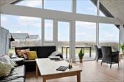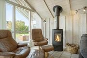 Im Inneren empfängt dich eine helle und gemütliche Einrichtung. Die großen, offenen Fensterpartien lassen viel Tageslicht herein und vermitteln ein angenehmes Gefühl, der Natur ganz nah zu sein – auch wenn du dich drinnen aufhältst. Das Wohnzimmer lädt zum Entspannen auf dem Sofa ein, wo der Kaminofen an kühleren Abenden wohlige Wärme und knisternde Gemütlichkeit verbreitet, während die Urlaubsgespräche ganz unbeschwert dahinplätschern. Man kann sich leicht ruhige Morgen mit einer Tasse Kaffee in der Hand sowie Abende mit Büchern und fröhlichem Lachen vorstellen. Das Badezimmer bietet eine Badewanne, die nach einem Tag in der frischen Fjordluft zu extra Verwöhnmomenten einlädt. Das Sommerhaus ist so gestaltet, dass sowohl gemeinsames Beisammensein als auch Ruhe ihren Platz finden – sodass jeder im Laufe des Urlaubs sein eigenes kleines Rückzugsrefugium entdecken kann.