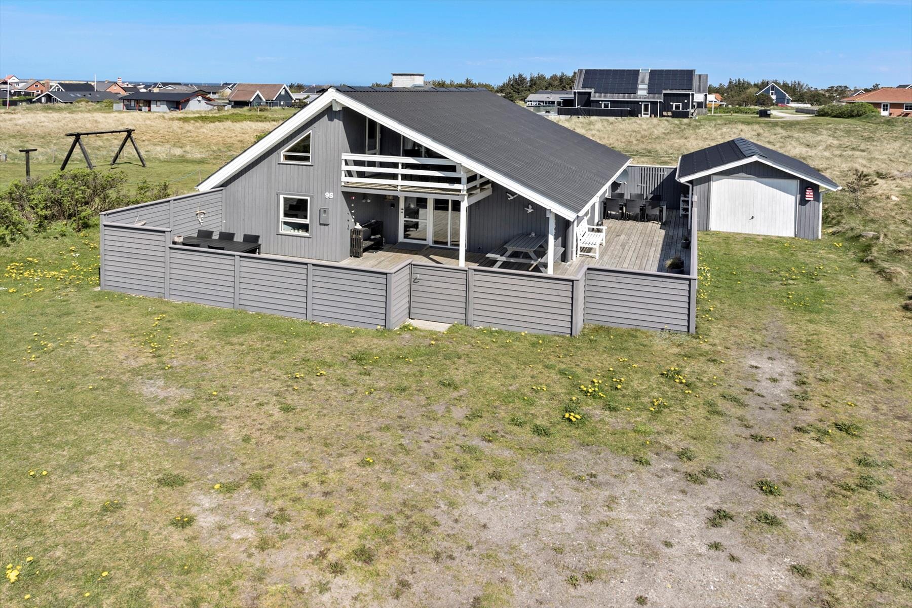 Auf einem herrlichen Grundstück am ruhigen Ende der Fiskervej gelegen, lädt dieses Ferienhaus zu reichlich Zeit im Freien ein. Die abgeschlossene Terrasse bietet Kindern die Möglichkeit, unbeschwert herumzutoben. Gleichzeitig können die Erwachsenen in den Gartenmöbeln entspannen, mit einer guten Tasse Kaffee in der Hand, während die Sonne wärmt und der Wind in den Dünen flüstert. Wenn der Abend naht, können Sie den Grill anheizen und das Mahl zu einem gemütlichen Moment unter freiem Himmel werden lassen. Von der Terrasse aus haben Sie einen Blick auf die umliegende Natur, die sowohl Vogelgezwitscher als auch eine erfrischende Brise vom Meer bietet. Ganz gleich, ob Sie Ruhe zur Entspannung oder Möglichkeiten für aktive Betätigung suchen, hier ist der perfekte Ort, um die Urlaubstage gemächlich verstreichen zu lassen.