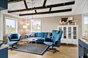 Im Inneren des charmanten, rundum renovierten Ferienhauses empfängt dich eine warme und einladende Atmosphäre. Der Stil ist klassisch dänisch: Holz, weiche Textilien und warme Farben sorgen für ein Gefühl von Geborgenheit – fernab des Alltags. Der offene Wohnraum lädt zu echter Qualitätszeit mit der Familie ein, und an kühleren Tagen wird der knisternde Holzofen zum natürlichen Mittelpunkt, der Wärme und Ruhe verbreitet. Das Haus verfügt über zwei gemütliche Schlafzimmer. Durch die großen Fenster strömt viel Licht in die Räume, und mit dem hohen Komfort fällt es leicht, in den Urlaubsmodus zu kommen. Auch an die praktischen Dinge ist gedacht – moderne Ausstattung macht deinen Aufenthalt angenehm und unkompliziert.