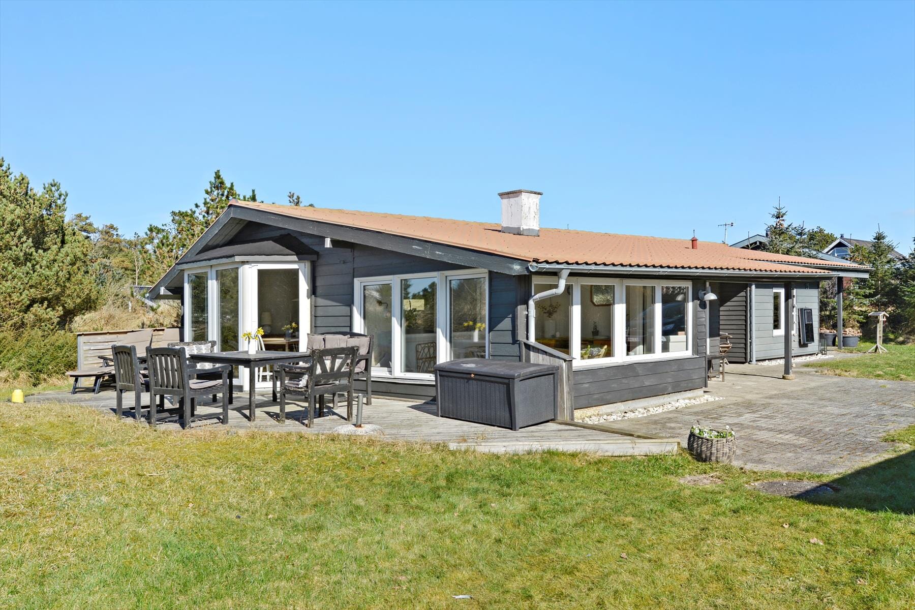 Tritt ein in dieses klassische Ferienhaus, wo du sofort die warme und einladende Atmosphäre spürst, die mit viel Sorgfalt für Komfort und Gemütlichkeit geschaffen wurde. Der zentrale Bereich im Wohnzimmer, in dem der charmante Kaminofen eine sanfte und angenehme Wärme verbreitet, lädt zu langen, behaglichen Abenden mit anregenden Gesprächen und gemeinsamem Beisammensein ein. Das helle Interieur und die sorgfältig ausgewählten Details spiegeln einen traditionellen, zugleich aber auch zeitlosen Stil wider, der dich sofort heimisch fühlen lässt. Mit einer gelungenen Kombination aus modernen Annehmlichkeiten und einem authentischen, rustikalen Flair ist das Haus so eingerichtet, dass es sowohl die Sinne anspricht als auch eine ruhige und entspannte Atmosphäre schafft. Hier kannst du dich mit einem guten Buch niederlassen, eine Tasse Kaffee genießen oder einfach deinen Gedanken freien Lauf lassen, während du die sanfte Wärme des Ofens einatmest und das behagliche Gefühl eines Zuhauses spürst, das von Qualität und Fürsorglichkeit zeugt.