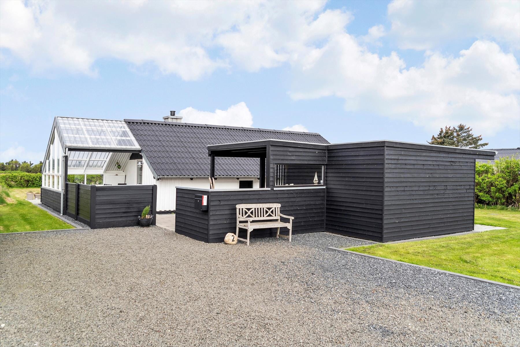 Draußen finden Sie viel Platz zum Entspannen und Genießen der Sonne auf den großen Terrassenflächen rund um das Haus. Es gibt geschützte Plätze, an denen Sie Ruhe und Privatsphäre finden und Sie können wählen, ob Sie Zeit in der Sonne verbringen oder sich in einer gemütlichen Ecke entspannen möchten. Die wunderschöne Natur umgibt das Haus und Sie können die Morgensonne auf der Terrasse genießen, während Sie über die ausgedehnten Dünen blicken. Abends ist die Terrasse der perfekte Ort zum Grillen und um die Zeit mit Familie und Freunden zu genießen und die langen Sommerabende zu genießen.