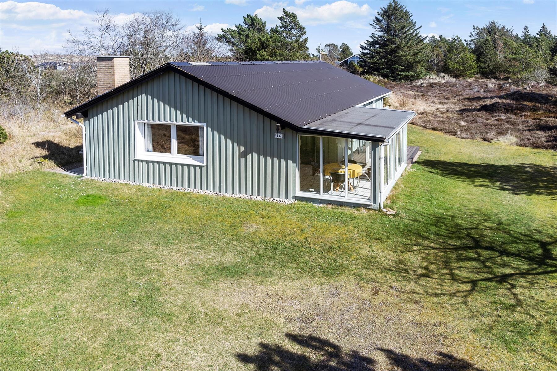 Das Grundstück rund um das Haus ist grün, friedlich und von typisch dänischer Natur umgeben. Auf der ostseitigen Terrasse genießt du die ersten Sonnenstrahlen bei einem heißen Kaffee, während du den Vögeln lauschst und in den Tag startest. Die südlich gelegene Terrasse lädt zum Verweilen in der Nachmittagssonne ein – vielleicht mit einem guten Buch oder einem Glas Wein. Hier kannst du das einfache Leben genießen, mit Blick auf Heidekraut, Dünenlandschaft und die Weite des Himmels. Die Natur beginnt direkt vor deiner Tür.