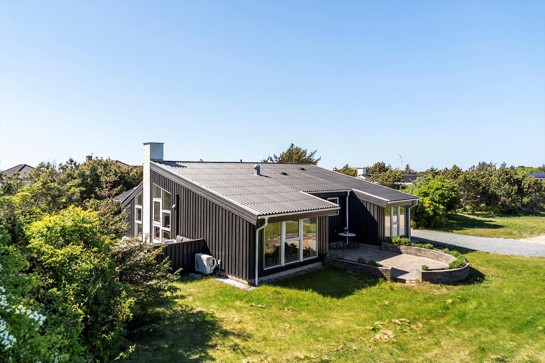 Draußen erwartet dich eine gemütliche Terrasse, auf der du die Sonne den ganzen Tag genießen kannst. Die Terrasse ist der perfekte Ort für gesellige Grillabende oder entspannte Mahlzeiten unter freiem Himmel, während die Kinder auf dem umliegenden Grundstück spielen. Die beliebte Lage in Klitmøller bedeutet, dass die Natur direkt vor der Haustür liegt – perfekt, um die Dünenlandschaft und die frische Meeresluft hautnah zu erleben.