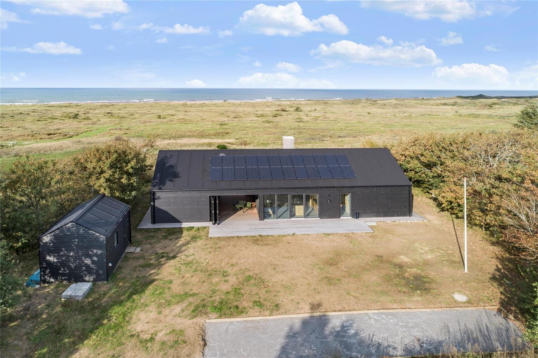 Es gibt nur wenige Stellen, an denen Sie so eine schöne, beeindruckende Aussicht über die hügeligen Dünen und die prachtvolle Nordsee genießen, wie bei diesem modernen Urlaubsdomizil. Das hügelige Naturgrundstück liegt ein wenig erhöht und besticht mit einer reizvollen Mischung aus hohen Gräsern, Strandhafer, Büschen und Bäumen. Das Grundstück ist als ein "Natura 2000"-Gebiet ausgewiesen. Rund um das gesamte Objekt schmiegen sich Terrassen, von denen ein Teil überdacht ist und mit einer großen Jalousie komplett verschlossen werden kann. Hier können Sie wunderbar im Kreise Ihrer Lieben die Mahlzeiten genießen und es sich abends gemütlich machen und dabei traumhafte Sonnenuntergänge im Westen bewundern. Wenn Sie Ihre Mahlzeiten ebenfalls draußen zubereiten möchten, nutzen Sie einfach die Außenküche, die mit einer Kochplatte und einem Gasgrill ausgestattet ist. Auf dem Terrassenareal locken zudem ein Außenkamin und eine Außendusche. Auf dem Grundstück befindet sich eine Bocciabahn, die bei Ihnen und Ihren Mitreisenden nicht nur für ein wenig körperliche Aktivität, sondern auch für viel Spaß und Abwechslung sorgen wird.