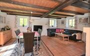 Ein wunderbar eingerichtetes Ferienhaus auf zwei Etagen. Das Haus ist gemütlich mit schönen und komfortablen Möbeln in heller Umgebung eingerichtet. Die gut ausgestattete Küche ist offen mit dem Ess- und Wohnbereich verbunden. Dort befindet sich eine gemütliche Ecke, nahe des Kaminofens und des Fernsehers. Vom Essbereich aus gelangen Sie auf die geflieste Terrasse, auf der Sie Ihre Mahlzeiten genießen können, sobald es das Wetter zulässt. Im ersten Stock gibt es ein weiteres Wohnzimmer mit Fernseher. Mit beiden Geräten können Sie ausländische Kanäle empfangen.