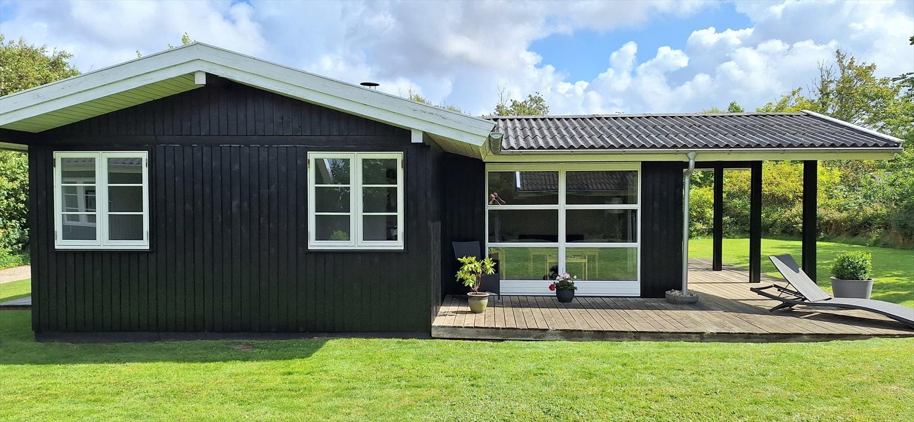 Vom Wohnraum aus kannst du direkt auf die große Terrasse treten, auf der du beste Möglichkeiten zum Genießen deiner Urlaubstage hast. Ein Teil der Terrasse ist überdacht und verlängert somit die hellen, lauen Sommerabende. Der Rest der Terrasse ist offen, sodass du dich nach Herzenslust von der Sonne verwöhnen lassen kannst. Zu jeder Zeit wirst du im Freien ein windgeschütztes Eckchen finden, an dem du es dir mit einem Buch, einem Kaffee oder einem Glas Wein gemütlich machen kannst. Der große Garten animiert Groß und Klein zum gemeinsamen Spielen und Umhertollen. Er bietet reichlich Platz - beispielsweise für das ein oder andere Fußballspiel oder die ein oder andere Runde Wikingerschach.
