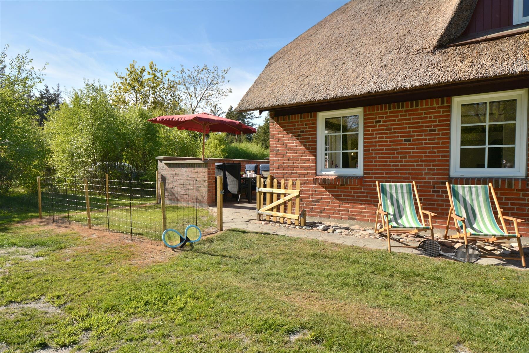 Beginnen Sie den Tag mit einer Tasse Kaffee auf der Terrasse und genießen Sie das morgendliche Lied der Waldvögel. Das Ferienhaus liegt auf einem großen Naturgrundstück, wo Sie die Ruhe und die wunderschöne, grüne Oase um Sie herum genießen können. Die große Liegewiese lädt zum Spielen und Entspannen gleichermaßen ein – perfekt für einen ruhigen Moment, während der Grill vorbereitet wird und der Duft in der Luft liegt.