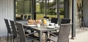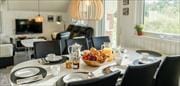 Draußen öffnet sich ein fantastisches Grundstück – umrahmt von hohen Bäumen, die natürlichen Windschutz bieten und ein wunderbares Gefühl von Ruhe und Privatsphäre vermitteln. Hier ist reichlich Platz für Ballspiele, Sonnenbaden oder stille Momente mit einem guten Buch. Die Kinder werden den schönen Spielturm mit Schaukeln und Rutsche lieben, auf dem sich schnell die besten Urlaubsspiele entwickeln. Die Terrasse schlängelt sich um das Haus und bietet sowohl offene als auch überdachte Bereiche – so findest du je nach Wetterlage und Stimmung immer einen Platz in der Sonne, im Schatten oder im Windschutz. Starte den Tag mit einem Kaffee im Freien, entspanne mittags auf der Liege und versammle die ganze Familie zum Grillen, wenn die Dämmerung hereinbricht. Bei jedem Wetter findet sich ein perfekter Platz auf der Terrasse.