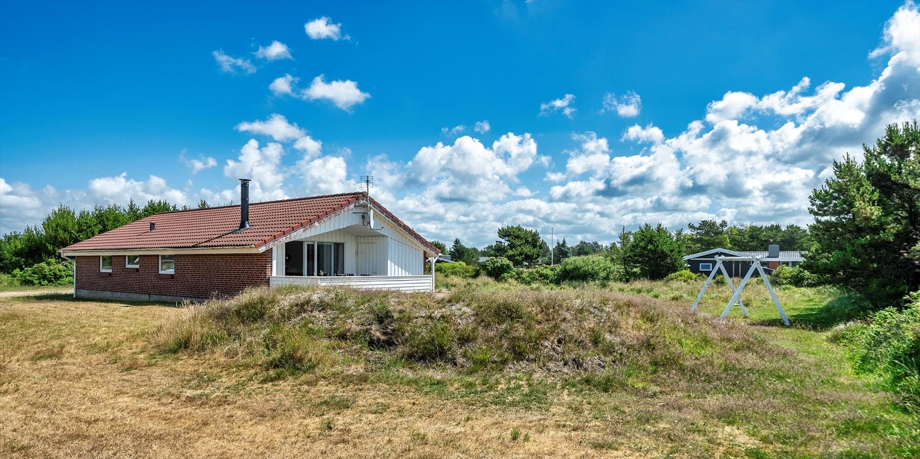 Haus-ID: VE371Gemütliches Ferienhaus auf einem offenem und naturbelassenem Grundstück. Das Ferienhaus ist für 8 Personen ausgestattet. Der Strand ist ca. 1000 Meter vom Ferienhaus entfernt. Das komplette Ferienhaus ist mit einem Laminatboden verlegt, ausser die Bäder. Das Wohnzimmer verfügt über eine große Rundsitzecke mit direktem Blick auf den Kamin. Das deutsche Fernsehprogramm empfangen Sie über eine Parabolantenne. Zusätzlichgibt es ein DVD-Abspielgerät im Haus. Das Ferienhaus verfügt über einen Internet-Anschluss (W-Lan). Der Speiseplatz ist zum Wohnbereich offen und gegenüber der Küche platziert. Die Küche verfügt über einen Herd mit Cerankochfeld, einem Backofen, einer Geschirrspülmaschine, einer Mikrowelle und einer Kühl- und Gefrierkombination. Das große Badezimmer ist mit einem WC, einem Handwaschbecken, einer Dusche ausgestattet. Ebenso befinden sich die Sauna und der Whirlpool in dem grossen Badezimmer. Das Gäste WC verfügt über ein Handwaschbecken und ein WC. Ebenso sind die Waschmaschine und der Trockner in dem Gäste WC untergebracht. Den Gästen stehen insgesamt vier Schlafzimmer zur Verfügung. Drei Schlafzimmer verfügen je über ein Doppelbett (2 x 180 x 200 und 1 x 160 x 200) und das vierte Schlafzimmer haben zwei Einzelbetten (2 x 90 x 200). Ein Teil des Terrassenbereiches am Hause ist überdacht. Es sind keine Haustiere erlaubt. Das Rauchen im Ferienhaus ist nicht gestattet. Eine Sandkiste und ein Schaukelstativ stehen für die kleinen Gäste auf dem Grundstück zum Spielen bereit. Das Ferienhaus ist 1992 erbaut worden.