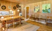Haus-ID: VE152Großes flott eingerichtetes Poolhaus für 8 Personen mit ausreichendem Platz für alle seine Bewohner. Das Poolhaus liegt auf einem großen Grundstück am Ende einer Sackgasse mit einem tollen Blick auf den See. Der Strand ist ca. 1,1 Km vom Ferienhaus entfernt. Zwischen dem Wohn- und Essbereich ist der Kamin aufgestellt. Im Wohnbereich befinden sich gemütliche helle Ledersitzmöbel. Das deutsche Fernsehprogramm empfangen Sie über eine Parabolantenne. Ein DVD-Abspielgerät steht ebenfalls zur Verfügung sowie Chrome Cast. Der Essbereich ist zur Küche hin offen gehalten. Die Küche verfügt über einen Herd mit Cerankochfeld, einem Backofen in Arbeitshöhe, einer Geschirrspülmaschine, einer Mikrowelle und einer Kühl- und Gefrierkombination. Es gibt insgesamt vier Schlafzimmer im Ferienhaus. Diese sind alle mit einem Doppelbett (Masse 2 Mal mit 140 x 200 und 2 mal mit 160x200)) ausgestattet. Auf dem Hems befinden sich weitere zwei Schlafplätze mit Matratzen und niedliche Sitzmöbel. Im ganzen Ferienhaus gibt es insgesamt zwei Bäder und ein Gäste WC. Die beiden Bäder sind jeweils mit einem WC, einem Handwaschbecken und einer Dusche ausgestattet. Im Poolbereich befindet sich das Schwimmbecken mit einer Grösse von ca. 5 x 3,5 x 1,30 Meter ( Länge x Breite x Tiefe). Vom Schwimmbecken aus haben Sie durch die große Fensterfront einen wundervollen Blick auf den See. Der Standwasser-Whirlpool ist hier im separaten Poolraum untergebracht und bietet Platz für 5 Personen. Der Standwasser-Whirlpool ist gleich betriebsbereit und kann bei Ankunft sofort genutzt werden. Hier brauchen Sie nicht abwarten und Wasser einfüllen, er steht ständig mit Wasser gefüllt. Vom Poolraum geht ein weiteres Gäste WC mit Handwaschbecken ab. So brauchen Sie nicht immer durchs Haus um in die normalen Bäder zu gelangen. Der Zugang zur Sauna ist hier vom Poolbereich. Um eine kleine Pause, nach dem Schwimmen, einzulegen zu können, stehen Ihnen ein paar Rattanmöbel zum Sitzen zur Verfügung. Das Haus verfügt über eine Luft-Wasser-Wärmepumpe zur Beheizung des Pools, um den Stromverbrauch zu senken. Eine Waschmaschine und ein Trockner sind im Ferienhaus auch untergebracht. Zwei schöne Terrassenbereiche stehen am Ferienhaus den Bewohnern zur Verfügung. Gestalten Sie Ihren Grillabend oder nehmen Sie einfach nur mal ein Sonnenbad auf einer der Terrassen und genießen den Urlaub. Es sind max. zwei Haustiere erlaubt. Katzen sind nicht erlaubt. Im Haus befindet sich ein Telefon, allerdings können hier nur Gespräche angenommen werden. Das Ferienhaus verfügt über einen Internetanschluss (W-Lan). Ein Gasgrill und ein Holzkohlegrill steht den Gästen zur Verfügung. Für Gas für den Grill befinden sich 2 Flasen im Hause und der Eigentümer stellt diese kostenfrei zur Verfügung. Sollten die Flaschen leer sein, bitte das büro kontaktieren. Für die Kleinen Gäste befindet sich ein schönes Klettergerüst, mit Schaukel, Kletterleiter und Klettertaue und Rutsche zur Verfügung. Ein Spielhaus, eine Sandkiste und ein Trampolien stehen den Kleinen ebenfalls zur Verfügung. Platz zum Bolzen ist auch auf dem Grundstück möglich. Das Ferienhaus ist 1989 erbaut worden und laufend renoviert. Das Rauchen ist nicht gestattet