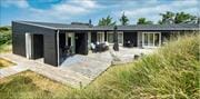 Die gemütliche Atmosphäre aus dem Wohnzimmer setzt sich auf der fantastischen, vollständig geschlossenen Terrasse fort, wo Holzdetails und geschützte Elemente den Stil des Hauses nach draußen tragen. Hier kannst du am Morgen in Ruhe deinen Kaffee genießen, den Vögeln lauschen und die frische Meeresluft spüren. Am Abend verwandelt sich die Terrasse in deine private Außenküche – der gemauerte Grill lädt ein zu frisch gegrilltem Fisch, saftigen Steaks und langen Sommerabenden unter dem blau-grauen Himmel Westjütlands. Die geschützte Gestaltung sorgt dafür, dass auch die Kleinen sicher spielen können, und macht die Terrasse perfekt für Spiele, zum Lesen oder für entspannte Momente. Von hier gelangst du direkt in das naturbelassene Grundstück, wo Sand, Strandhafer und Dünen eine wunderschöne und ursprüngliche Kulisse für alle kleinen Urlaubsaugenblicke bilden – vom Nachmittag in einem Liegestuhl bis zum späten Abendspaziergang, während sich der Himmel von goldenen Tönen zu tiefem Indigo über der Nordsee färbt.