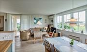Die Küche ist diskret in einer Ecke platziert und eignet sich hervorragend für die Zubereitung der täglichen Mahlzeiten. Küche, Essbereich und Wohnraum sind angenehm miteinander verbunden, sodass du auch beim Kochen Teil der Gemeinschaft bleibst. Im Wohnzimmer kannst du es dir auf dem Sofa gemütlich machen und den Blick durch die Fenster schweifen lassen, während die entspannte Stimmung zu einer Pause einlädt – vielleicht mit einem Buch oder einer Tasse Tee nach einem erlebnisreichen Tag.