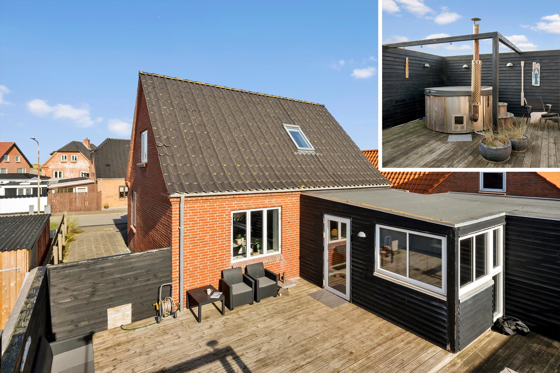 Haus-ID: 723Träumst du von einem Urlaub, der sowohl Stadtleben als auch Strand vereint? Dann ist dieses Stadthaus in der Jagtvej 4 in Thyborøn genau das Richtige für dich. Mit der gemütlichen Atmosphäre der Stadt direkt vor der Haustür und der Nordsee nur einen kurzen Spaziergang entfernt, erwarten dich hier sowohl Entspannung als auch Abenteuer. Ein wunderbarer Badezuber auf der Terrasse setzt dem Ganzen das i-Tüpfelchen auf und lädt zu erholsamen Momenten unter freiem Himmel ein.