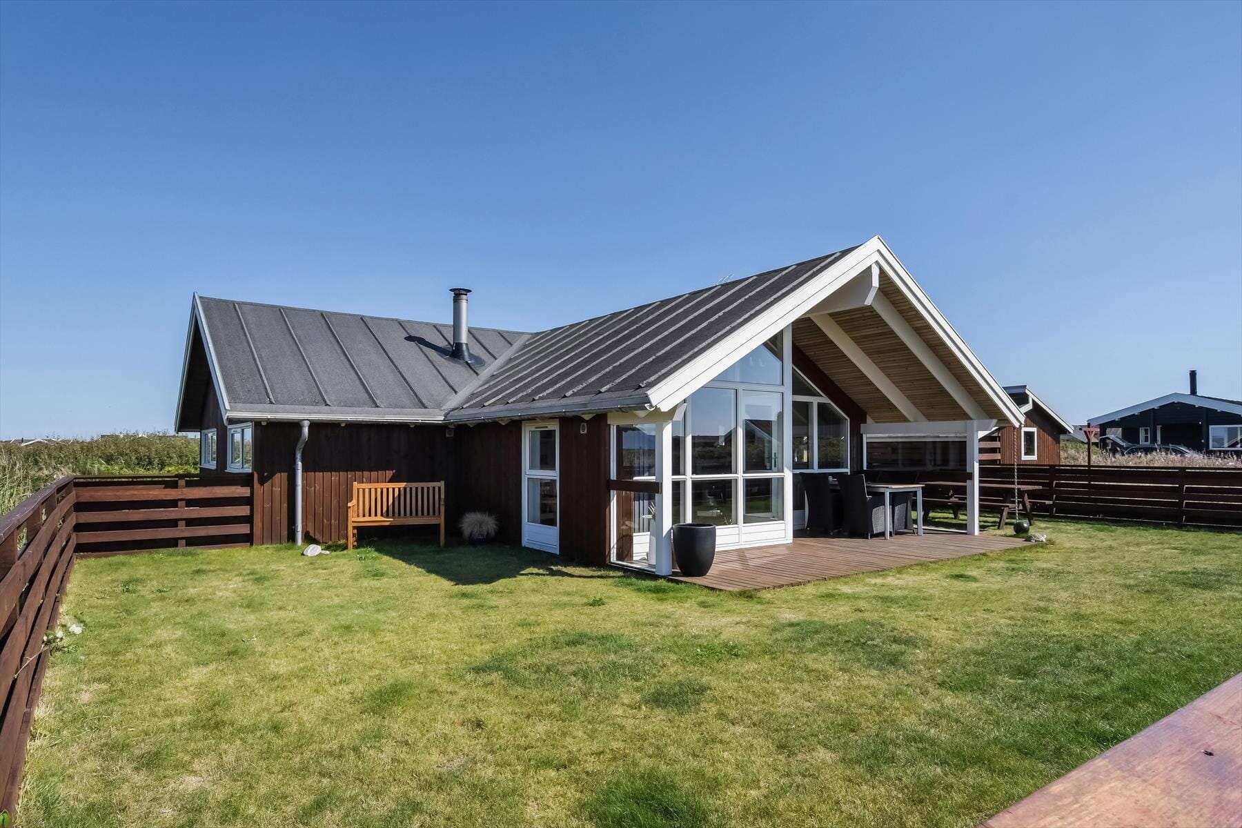 Haus-ID: 512Suchst du ein Ferienhaus, das echte Urlaubsstimmung versprüht und in dem du dich sofort wie zu Hause fühlst? Dann ist das Ferienhaus in der Lyngsletten 44 in Ferring Strand genau das Richtige für dich. Nur 400 Meter von der Nordsee entfernt erwartet dich ein helles und charmantes Haus, in dem Gemütlichkeit großgeschrieben wird – nicht zuletzt dank des Kaminofens im Wohnzimmer, der besonders an kühleren Abenden für behagliche Wärme sorgt.