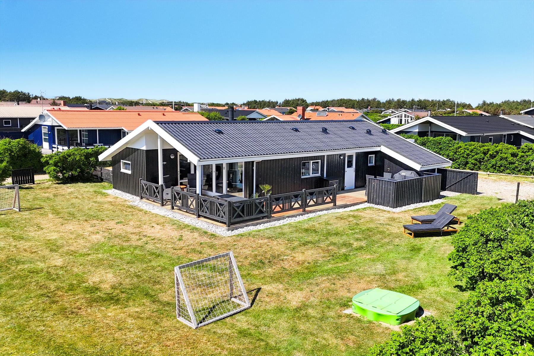 Das Haus liegt auf einem großen Grundstück mit reichlich Platz, um die Natur zu genießen. Kinder und Hunde können auf der gepflegten Rasenfläche spielen, während du die Sonne auf einer der Terrassen genießt. Die nach Süden ausgerichtete Terrasse lädt zu langen Sommerabenden mit Grillgerichten und gemütlichem Beisammensein ein, während du die friedliche Umgebung auf dich wirken lässt. Mit der Nähe zum Strand von Vejlby Klit ist ein spontaner Ausflug ans Meer nie weit entfernt – egal, ob du schwimmen, Sandburgen bauen oder einfach nur am Wasser spazieren möchtest.