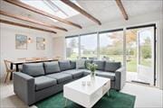 Dieses Ferienhaus wurde im Jahr 2021 einer umfassenden Renovierung unterzogen, instand gesetzt und mit einer geschmackvollen Einrichtung versehen. Dies gilt selbstverständlich auch für den offen mit der Küche kombinierten Wohnraum. Die helle, offene Küche verwöhnt mit einem direkten Zugang zur Terrasse. Sie beinhaltet einen Backofen, Kochplatten, einen Geschirrspüler und einen Kühlschrank mit Gefriermöglichkeit. Der Wohnraum besticht mit hohen Decken und einer offenen Balkenlage. Von hier aus genießen Sie ebenfalls direkten Zugang zur Terrasse. Für entspannte Stunden im Kreise Ihrer Lieben sorgen ein guter Essplatz, ein Chaiselongue-Sofa und Lehnstühle sowie ein Fernseher mit dänischen Sendern und Chromecast zum Streamen von Filmen, Serien und dergleichen. Das ansprechende Badezimmer begrüßt Sie mit einer Duschnische. Ihnen stehen drei Schlafzimmer mit je einem Doppelbett zur Verfügung. Das schöne Ferienhaus wird mittels einer Wärmepumpe und Elektroheizkörpern beheizt.